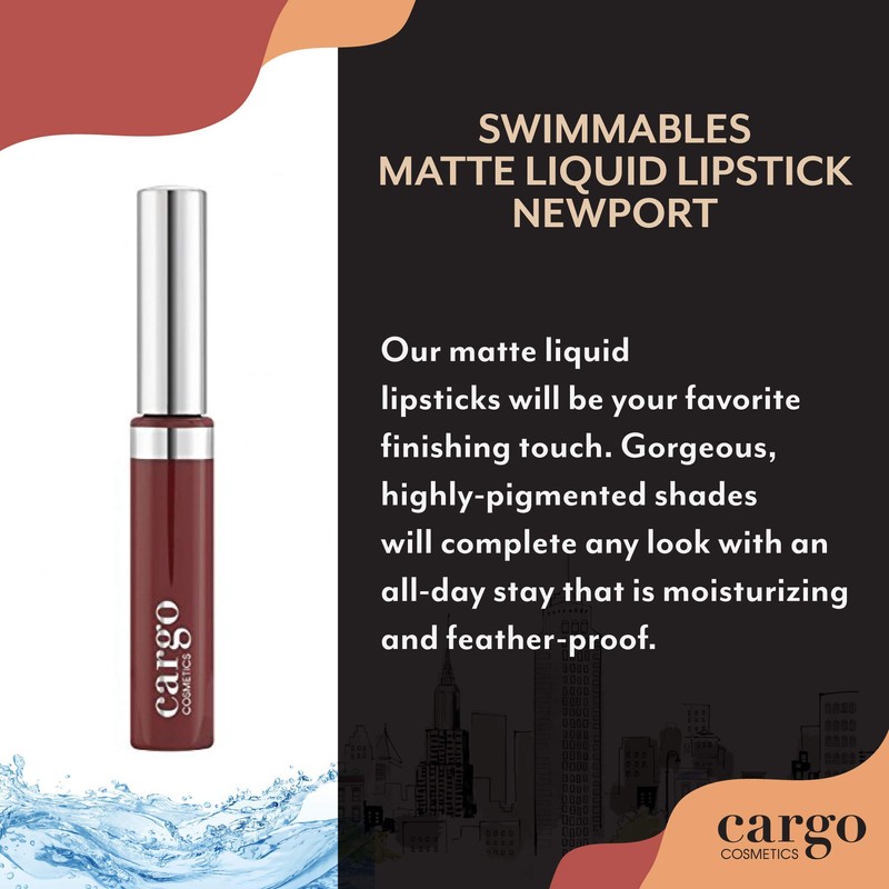 Cargo Cosmetics -Swimmables Longwear Matte Liquid Lipstick, Water Resistant, Transfer-Proof, Smudge Proof, budgeproof, Newport