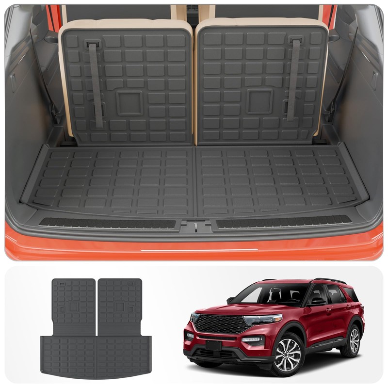 Thinzyou Cargo Mat Compatible with 2020-2025 2026 Ford Explorer Trunk Mat Cargo Liner Seat Back Cover Protector TPE All Weather Trunk Liner 2025 Explorer Accessories (Trunk Mat with Backrest Mats)