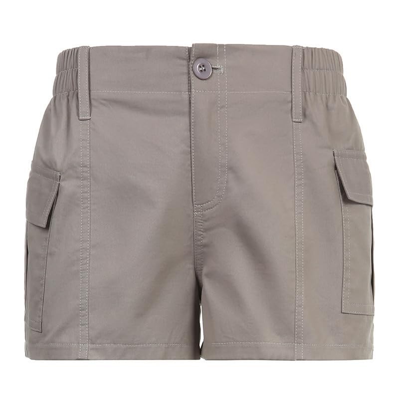 Cargo Shorts for Women Trendy 2025 Summer High Wasited Utility Cut Off Y2k Mini Shorts with Pockets Bottoms Grey