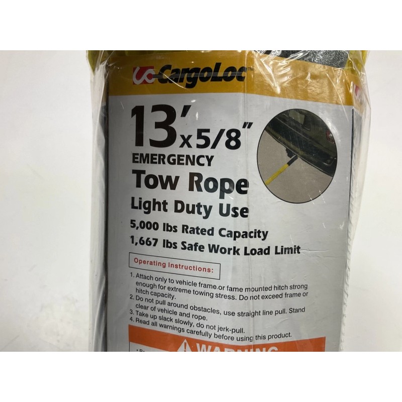 CargoLoc 82492 Emergency 5/8" X 13' X 5,000 Lbs - Tow Rope With Hooks