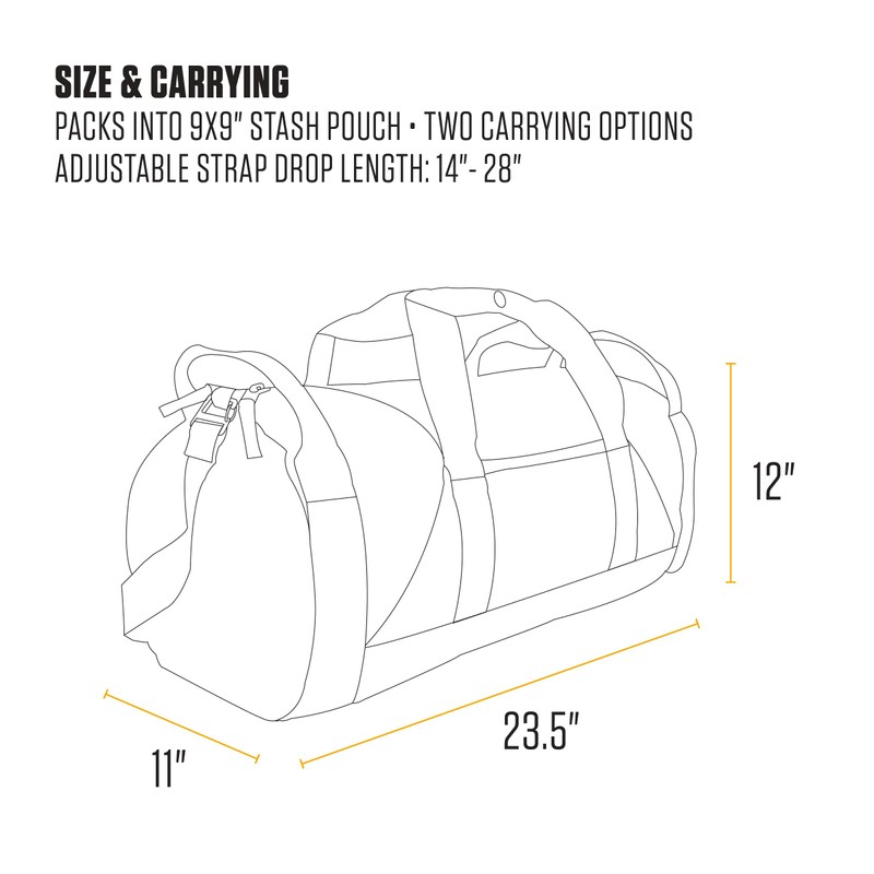 - PORTABLE MEETS PACKABLE| Our Carhartt Classic Round Duffel conveniently packs into a stowable pouch for easy transport, making it a must-have for travel. Great as a mini duffle bag or foldable duffle bag for travel.