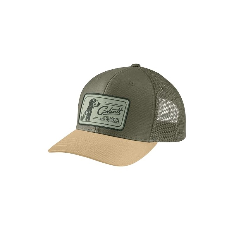 Carhartt Men's Canvas Mesh-Back Dog Patch Cap, Dusty Olive