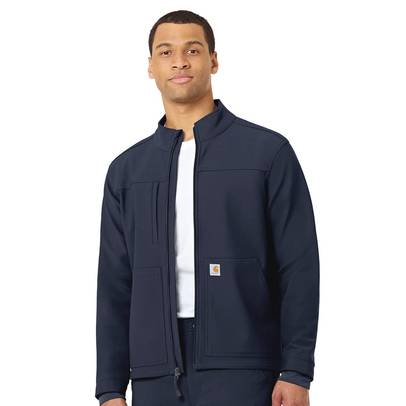 - Modern Fit, Stylish 3-Pocket Design: This jacket has a zip welt exterior chest pocket and two large front side-entry pockets, plus fashionable Carhartt logo details