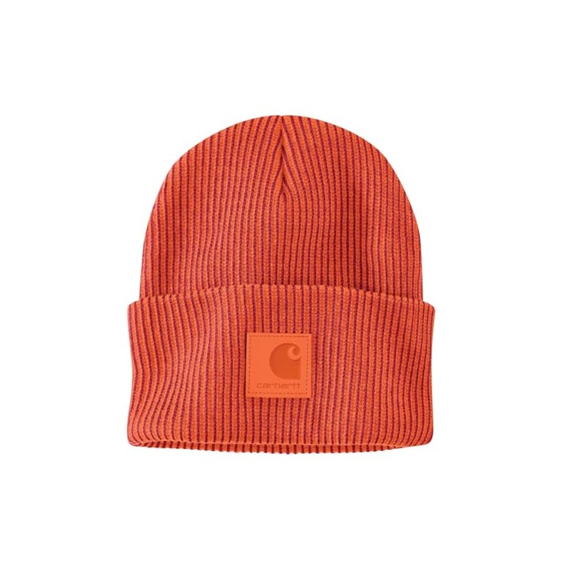 Carhartt Men's Knit Cuffed Plaited Beanie, Industry Red/Bright Orange, One Size