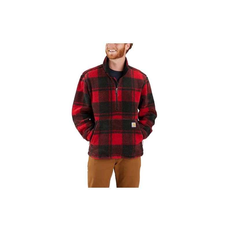Carhartt Men's Loose Fit Fleece Pullover, Crabapple/Black Plaid, X-Large Tall
