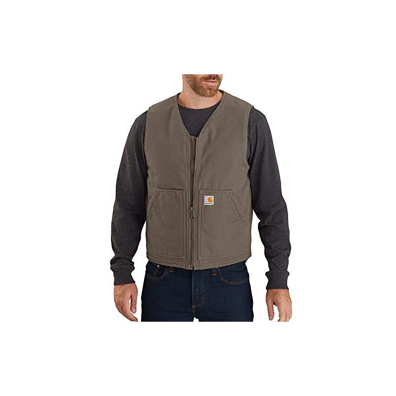 Carhartt Men's Relaxed Fit Washed Duck Sherpa-Lined Vest, Driftwood, Small