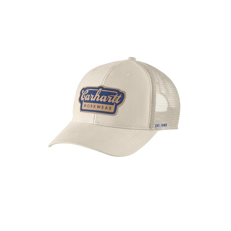 Carhartt Men's Rugged Flex Twill Mesh-Back Script Patch Cap, Chalk