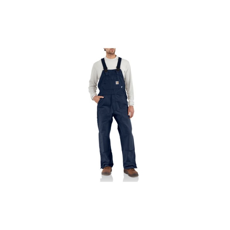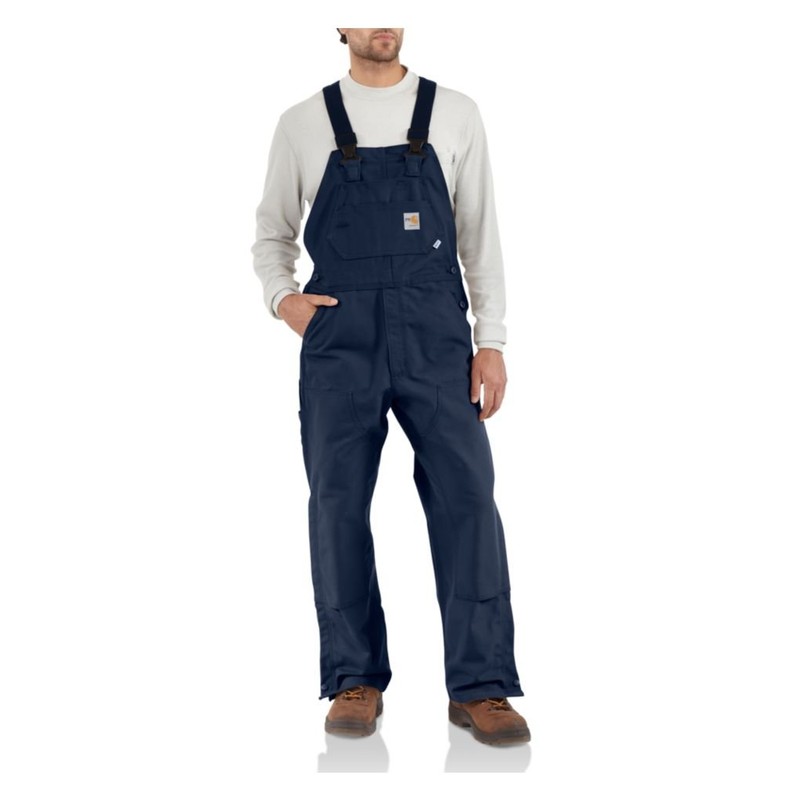 Carhartt Mens Flame Resistant Duck Bib Overalls and Coveralls Workwear Apparel, Dark Navy, 40W x 30L US