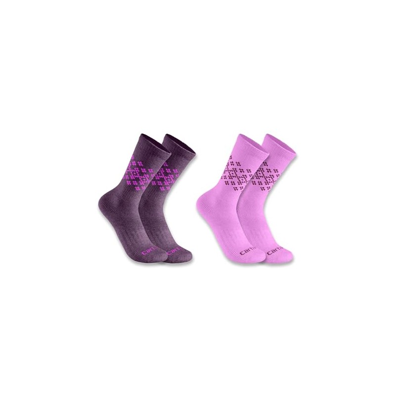 Carhartt Women's Midweight Synthetic-Wool Blend Fairisle Crew Sock 2 Pack, Assorted 02 Purple, Large