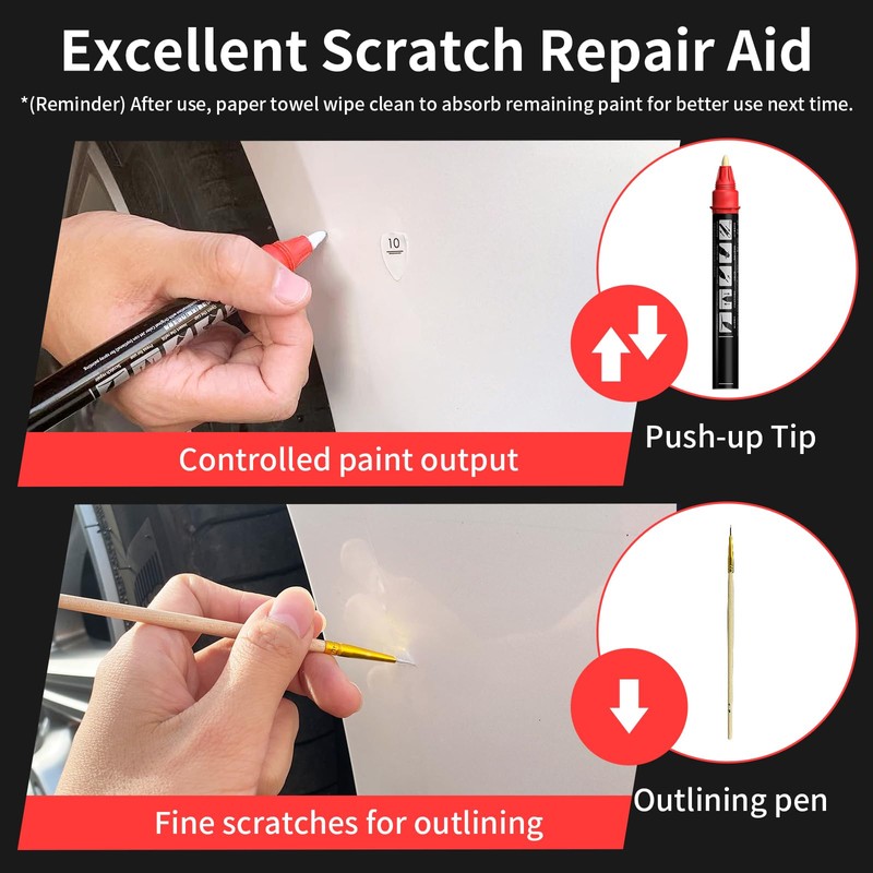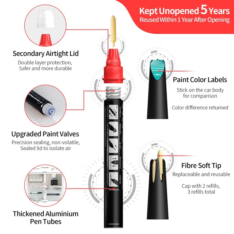 - 【Large Capacity,Unique Design,Easy to Use】0.56 fluid ounces, can cover 16 square centimeters of repair area. Unique valve design, smooth paint discharge, precise paint control. Equipped with 3 microfiber nibs, does not hurt the original car paint, no paint hanging phenomenon. Unopened can be kept for 5 years, and can be reused within 1 year after opening. Thickened aluminum pen tube, collision resistant, high and low temperature resistant (-30°C to 80°C)