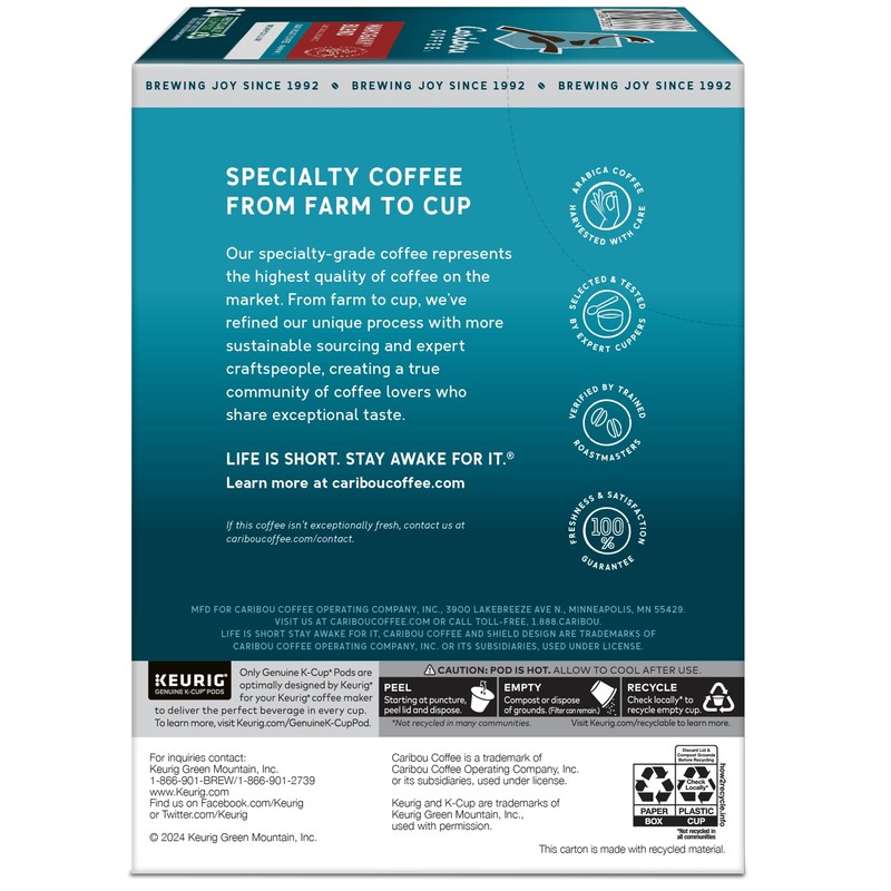 - Each Caribou Coffee K-Cup Pod has a built-in coffee filter - no measuring and no mess.
