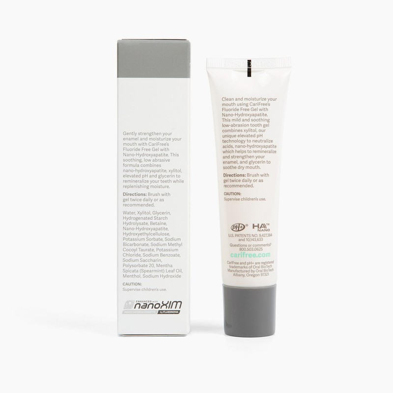 - [PROTECT YOUR SMILE]: CariFree Fluoride Free Gel (formally called CTx3 Gel) contains nano-hydroxyapatite, a natural component of saliva and the mineral your teeth are made of. The nano-hydroxyapatite in this gel is bio-available and mimics the size and shape hydroxyapatite that is naturally found in saliva.