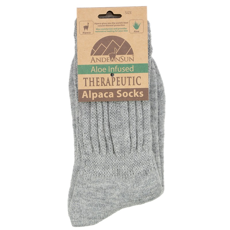 Caring Warm Therapeutic Alpaca Socks for Poor Circulation - Non Irritating Smooth Seam (Light Grey Crew - Medium)