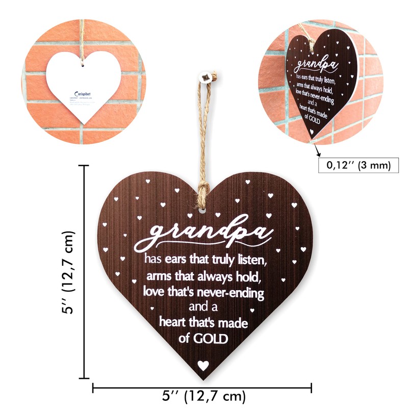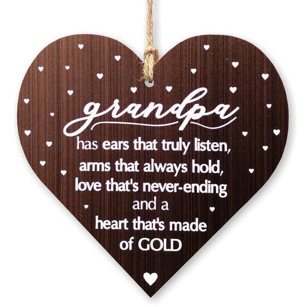 - 【CUSTOMIZE YOUR HOME】Grandpa has ears that truly listen, arms that always hold, love that's never-ending and a heart that's made of gold! Heartwarming and inspiring words in a lovely, cute heart-shaped decorative sign, to make every grandpa feel loved. A charming and cheerful decorative reminder that shows how much you care and love your grandpa.