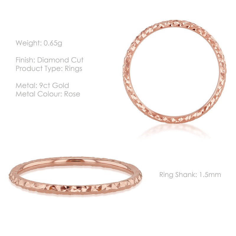 Carissima 9ct Gold Ladies Diamond Cut Narrow Ring, White Gold
