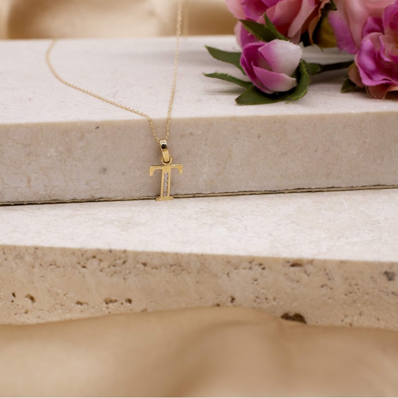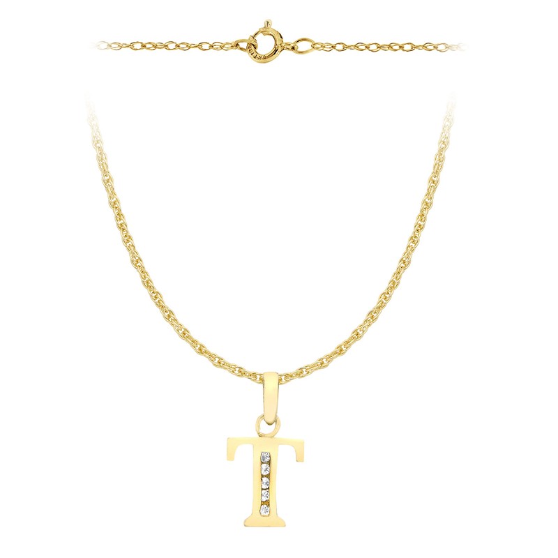 Carissima Gold 9 ct Yellow Gold Cubic Zirconia T Initial Pendant on Chain Necklace of 46 cm/18-inch