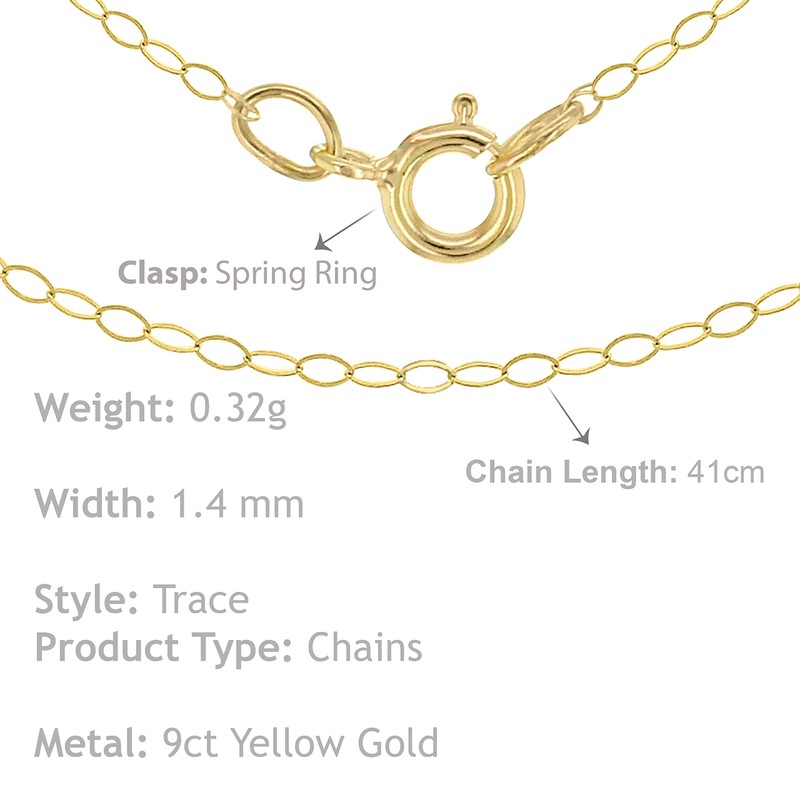 Carissima Gold 9ct Yellow Gold Trace Chain of 41cm