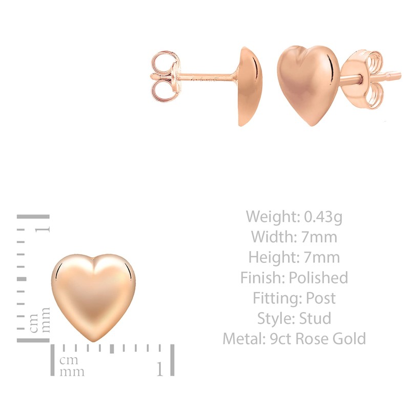 Carissima Gold Children's 9 ct Rose Gold 6.9 x 7.2 mm Puffed Heart Stud Earrings
