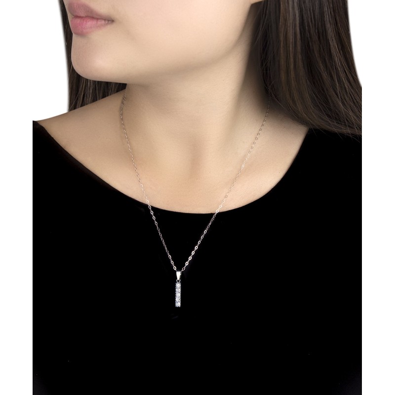 Carissima Gold Women's 9 ct White Gold Cubic Zirconia Drop Pendant on Trace Chain Necklace of 46 cm/18 inch