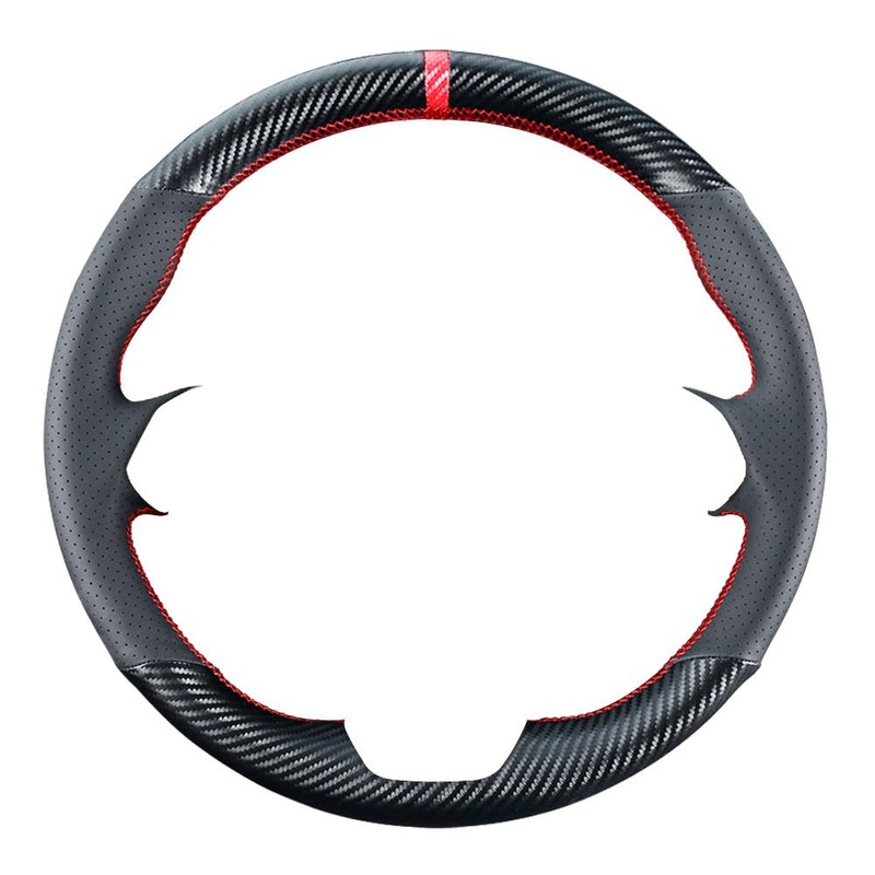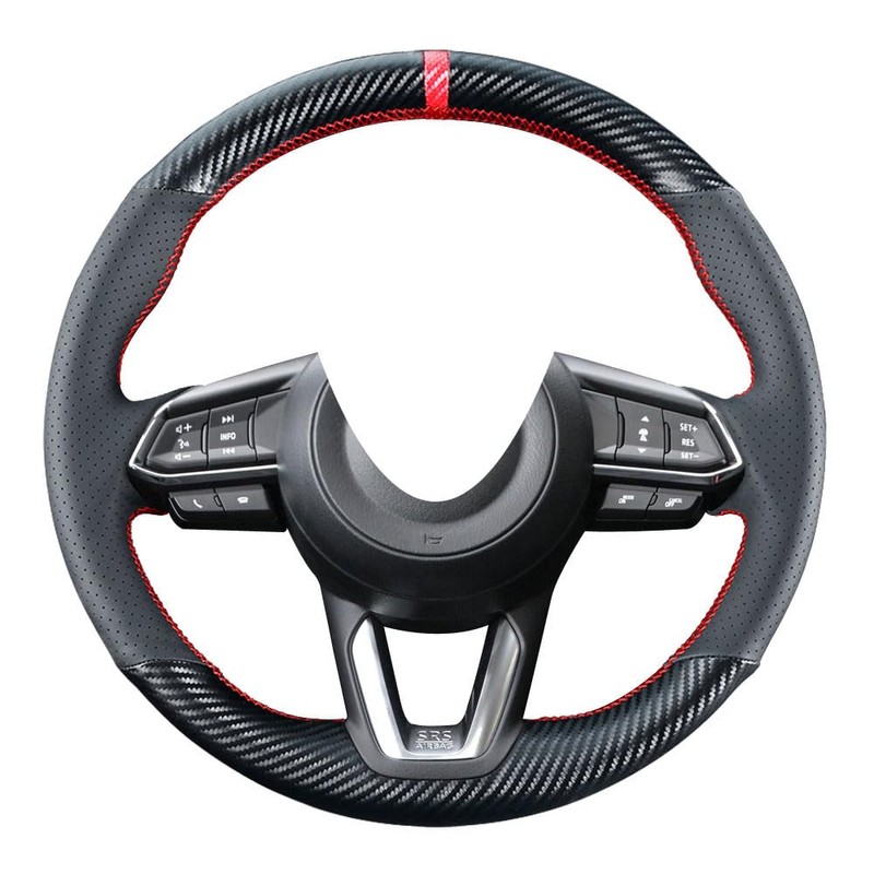Carkooler - Funda de volante para Mazda 3 / 2017-2020, Mazda CX-5, Mazda 6 / 2016-2020, CX-9 / 2018, 2019, 2020, CX-3, 15 pulgadas, accesorios interiores de fibra de carbono de piel negro