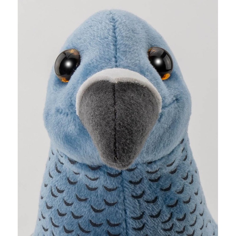 - The fur of the cuddly animal is in beautiful light blue and dark blue. For the realistic look of the feathers, the head and wings are clarified with black fabric. The pigeon has a lifelike appearance. The color of the safety eyes is brown.