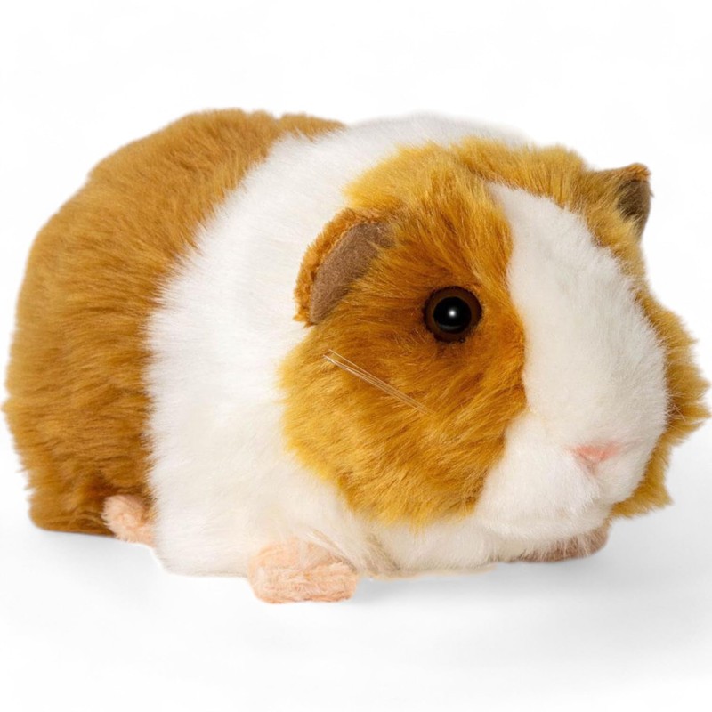 - The guinea pig is approx. 20cm long. There are granules in the body of the plush animal. The fur has a very pleasant feel. Ideal also as decoration.