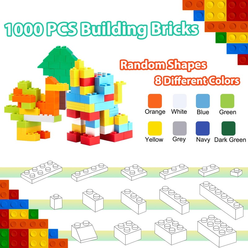 Carlerait 1000PCS Building Bricks, Bulk Classic Building Blocks Set for Boys ...