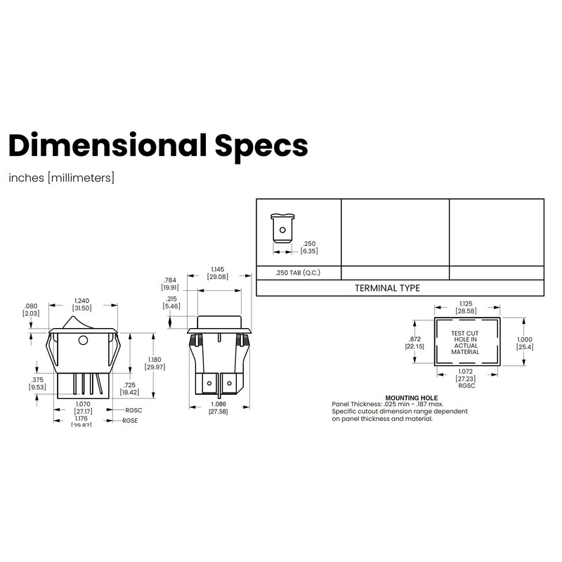 - Fits mounting hole of 1.125" x .872" (28.58mm x 22.15mm)