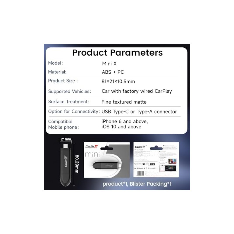 • Versatile Dual-Head USB Connectivity: Equipped with both USB-A and USB-C ports, the Carlinkit MINI 5 is compatible with a wide range of car models and systems. This dual-head design ensures easy installation and optimal performance, making it a versatile choice for any vehicle. Enjoy a seamless transition to wireless CarPlay with flexible connectivity options.
