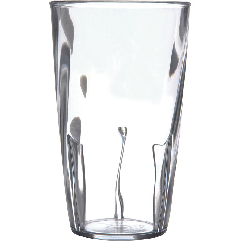 The Carlisle Swirl polycarbonate clear tumbler has a swirling glass-like appearance and is dishwasher safe. The cup has embossed lines that indicate 2-oz. Increments for monitoring fluid intake. The polycarbonate material is resistant to breakage.