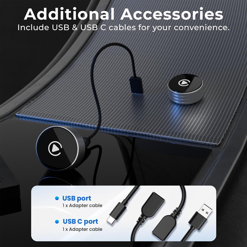 - Plug and Play y reconexión rápida: experimente la verdadera comodidad plug-and-play con el adaptador inalámbrico Carlizem 2 en 1. Conéctese fácilmente en tres sencillos pasos sin necesidad de controladores adicionales, aplicaciones o actualizaciones del sistema. Después de la configuración inicial, el potente chip integra rápidamente tu teléfono en la visualización del coche en 10 segundos. (Asegúrate de que tu teléfono olvide las conexiones Bluetooth/WiFi con el sistema de información y entretenimiento del coche antes de comenzar)