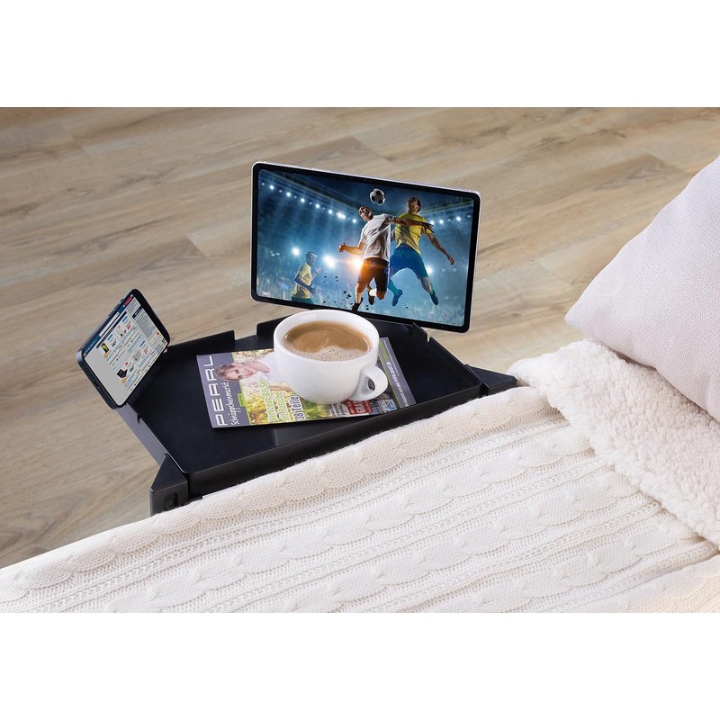 - Cut-outs for smartphone, tablet PC and cable. Load capacity: up to 3 kg. Dimensions of storage area: 34 x 22 cm, weight: 728 g