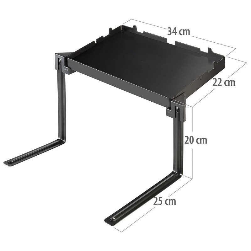 - Easy to open and fold. Non-slip shelf: 34 x 22 cm. Maximum load: 3 kg. Two adjustable heights. With cut-outs for smartphone, tablet PC, cable