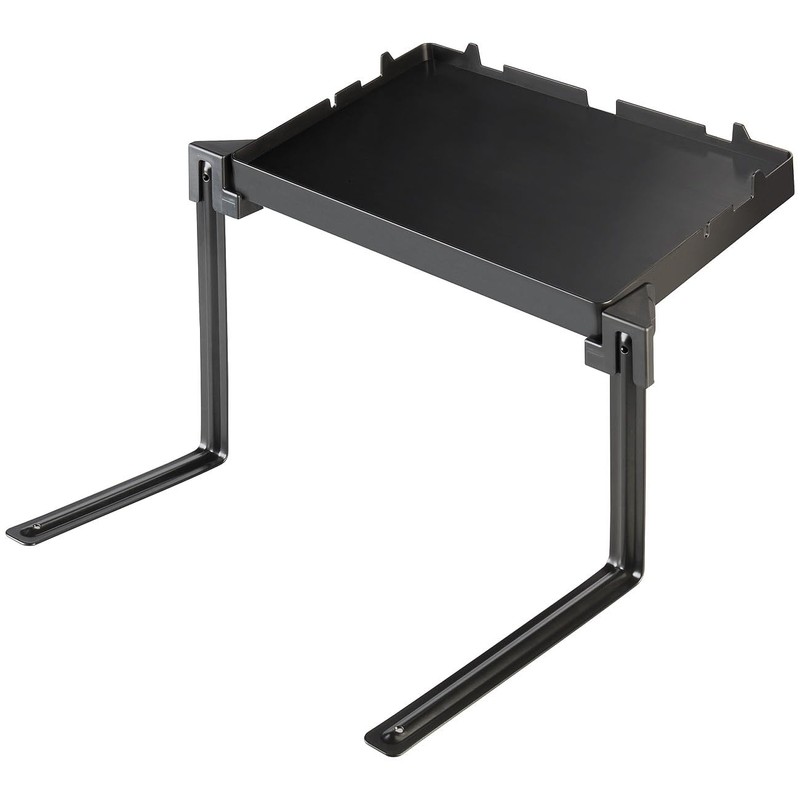 - Easy to open and fold. Non-slip shelf: 34 x 22 cm. Maximum load: 3 kg. Two adjustable heights. With cut-outs for smartphone, tablet PC, cable