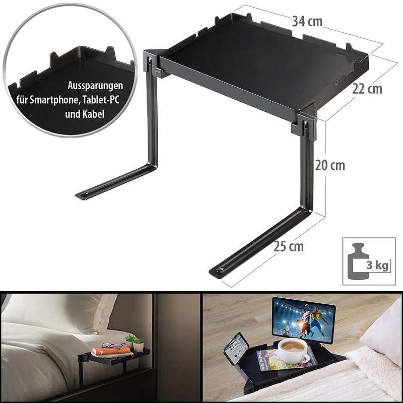 - Folding bed shelf including bracket and instructions in German. Smartphone holder table – also relevant or suitable for: laptop table