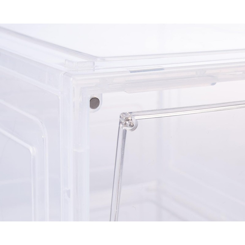 - Transparent and stackable up to 12 rows Access at any time via magnetic flap High-quality plastic Versatile For shoes up to size 47 Dimensions: 34 x 25 x 18 cm