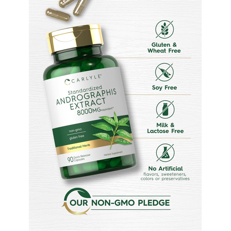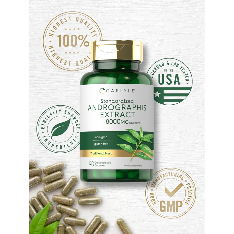 Carlyle Andrographis Paniculata Capsules | 8000mg | 90 Pills | Herb Extract Supplement | Non-GMO and Gluten Free