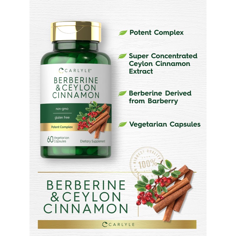 Carlyle Berberine with Ceylon Cinnamon | 2000mg Complex | 60 Capsules | Vegetarian, Non-GMO, Gluten Free