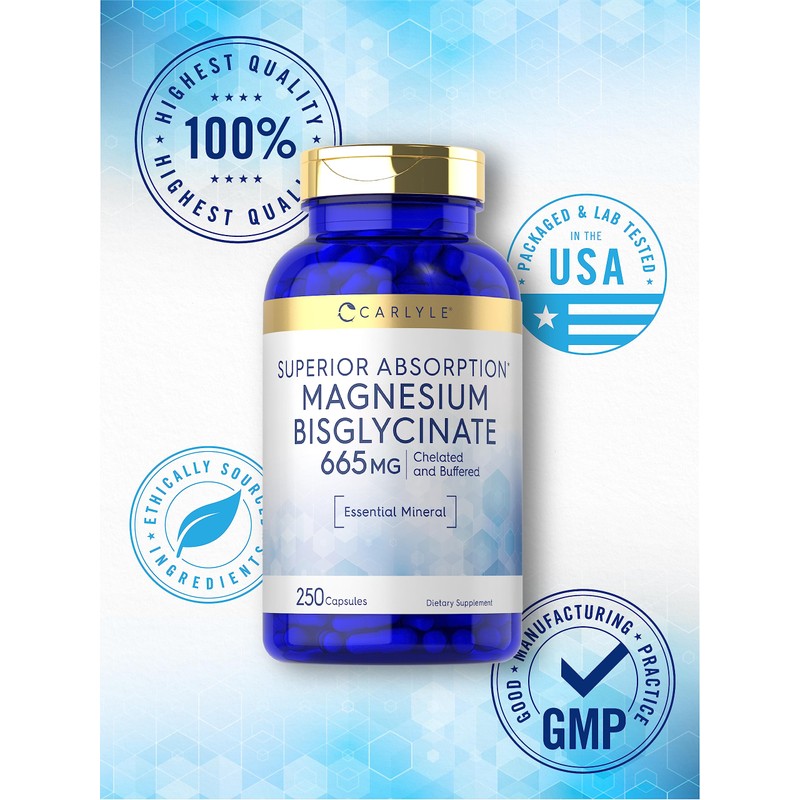 Carlyle Buffered Magnesium Bisglycinate 665 mg | 250 Capsules | Chelated Essential Mineral | Non-GMO and Gluten Free Supplement