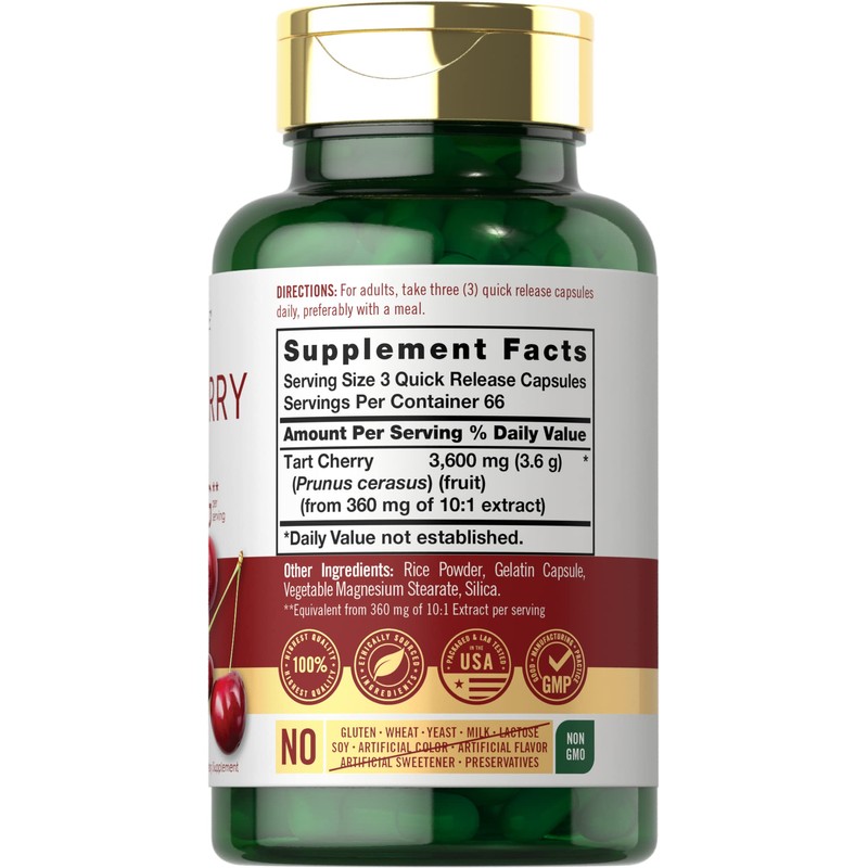 • TRADITIONAL HERB: The equivalent of 3,600 mg of Tart Cherry fruit per serving in convenient capsules