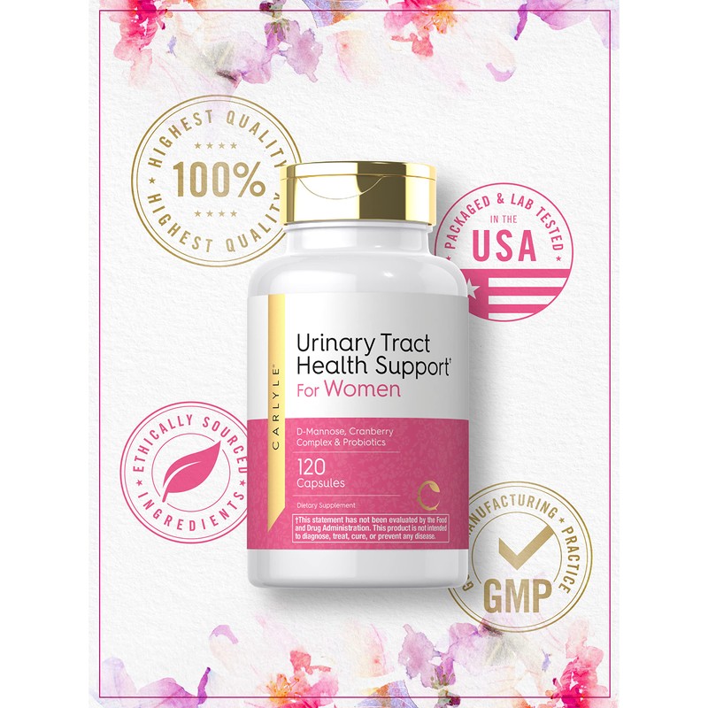 Carlyle Carlyle Urinary Tract Health for Women | 120 Capsules | Relief for Women | with D-Mannose, Cranberry Complex & Probiotics | Non-GMO, Gluten Free