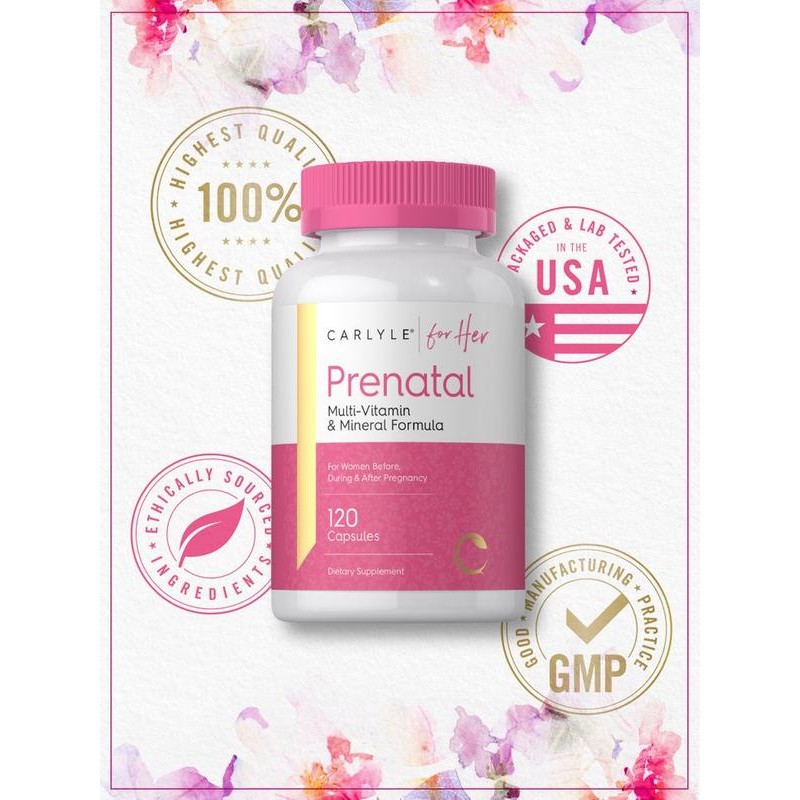 Carlyle Prenatal Vitamins for Women, 120 Capsules – Multivitamin & Mineral Formula with Folic Acid, Non-GMO, Gluten-Free, Daily Supplement for Her