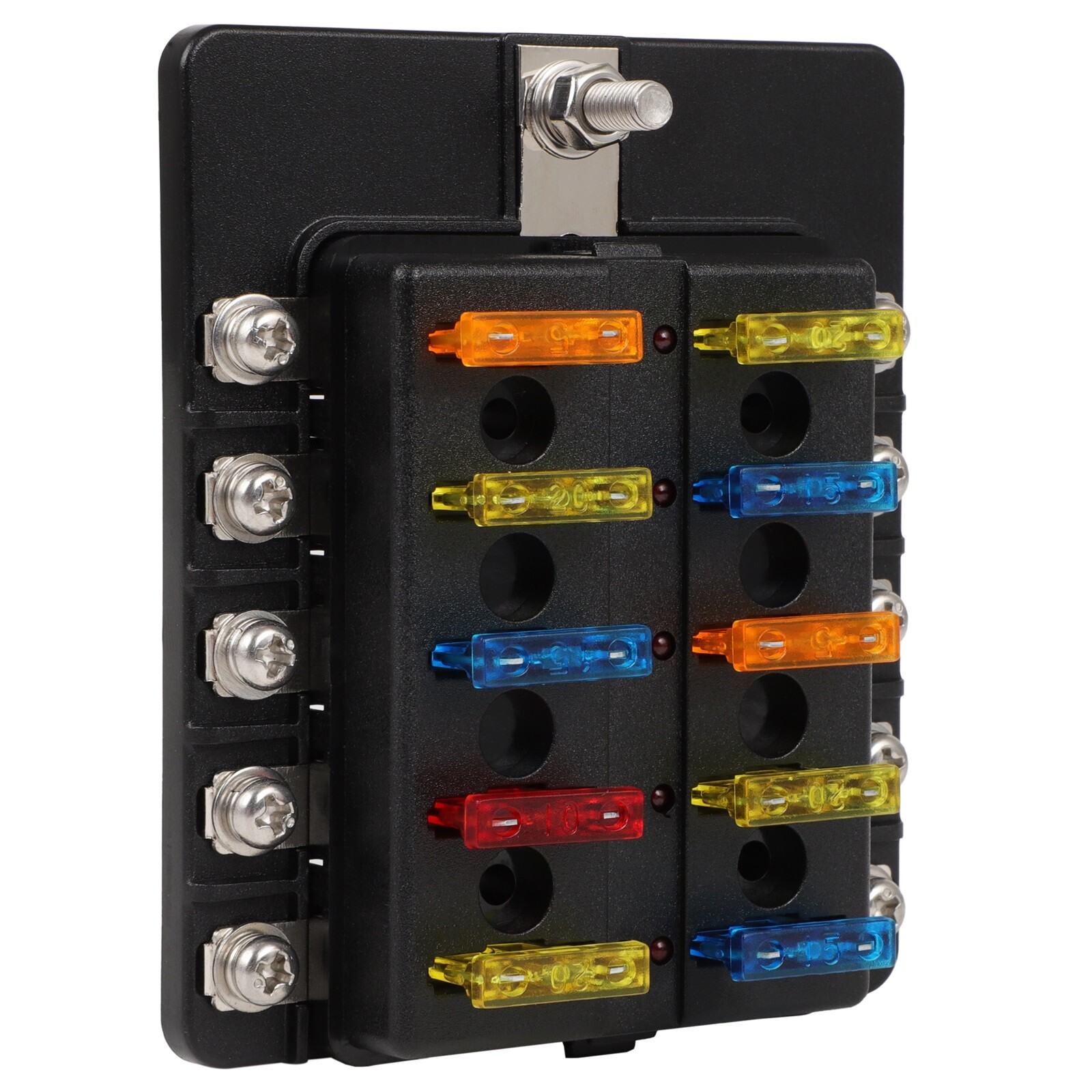 CARMA Automotive 10 Way For All Vehicle Blade Fuse Box Block Holder With LED Indicator