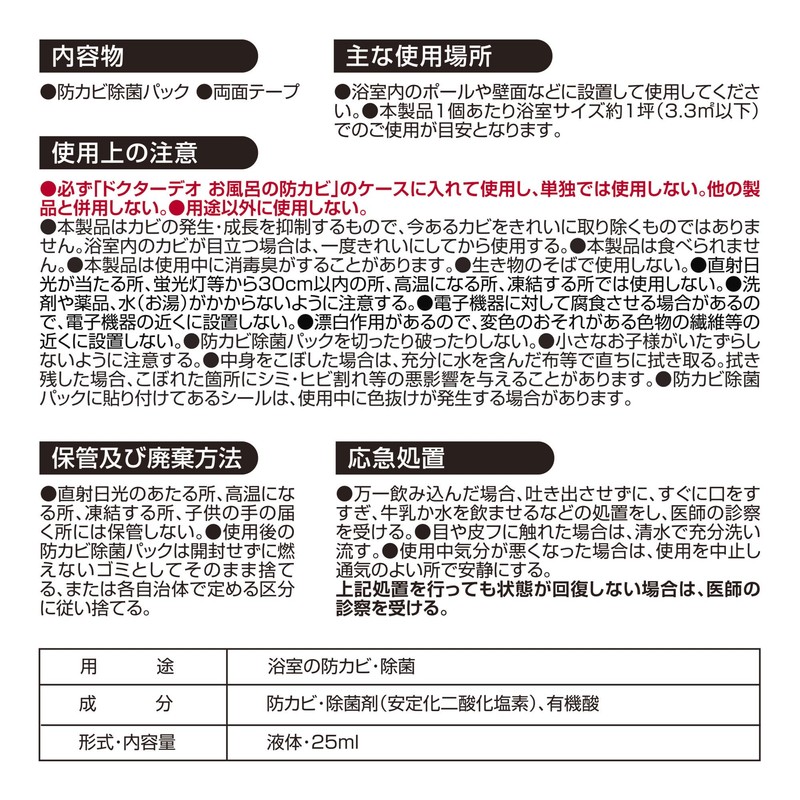 - This product is a refill for "DSD48 Doctor Deo Bath Mold and Mildew Resistant Hanging and Stick Type" Case hook not included