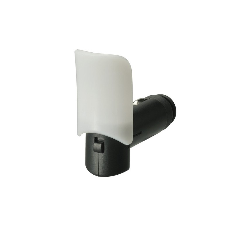 • This LED lamp can be used with 12 V accessory sockets (cigarette lighter socket), such as an in-panel, console box, or trunk room. The shade reduces glare and emits a gentle blue light. Shade cannot be turned on or off. On/off switch included