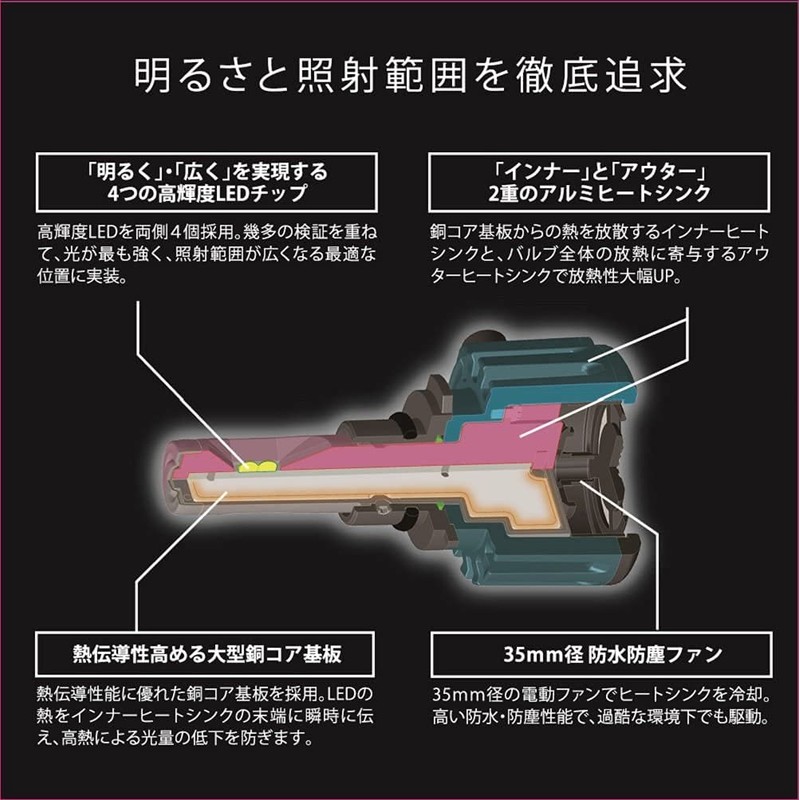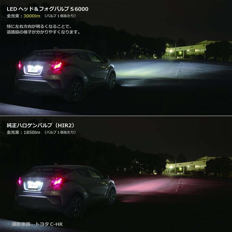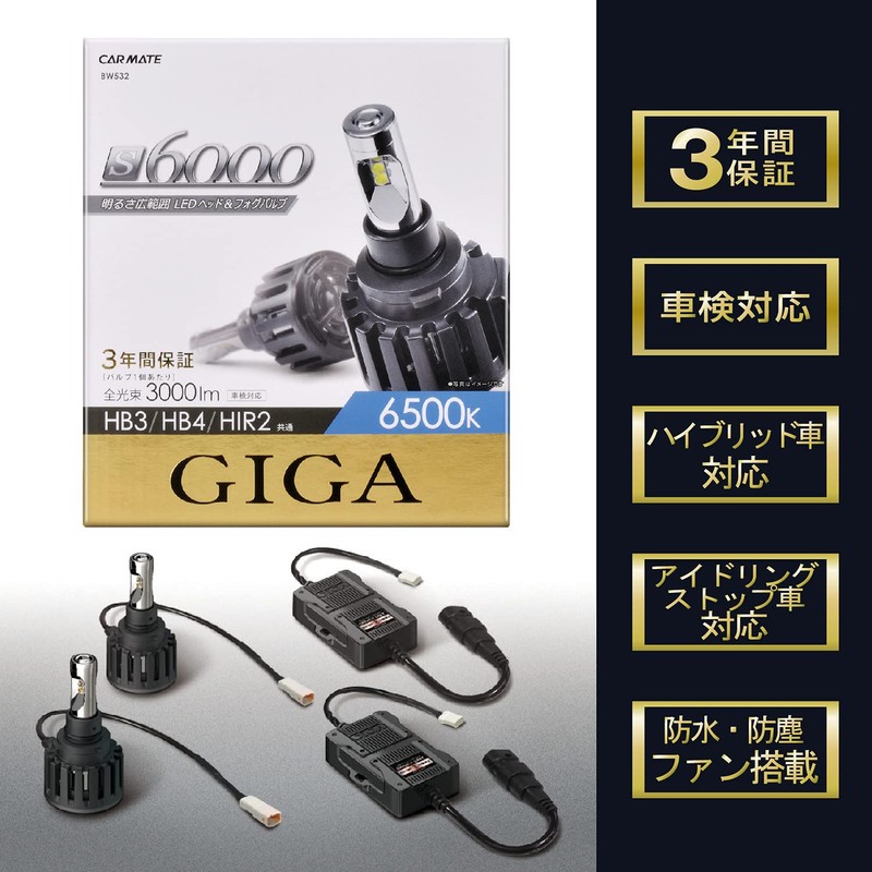 カーメイト(CARMATE) 車用 LED ヘッドライト フォグランプ GIGA S6000シリーズ HB3/HB4/HIR2共通 トヨタC-HR対応 6500K 6000lm 車検対応 BW532