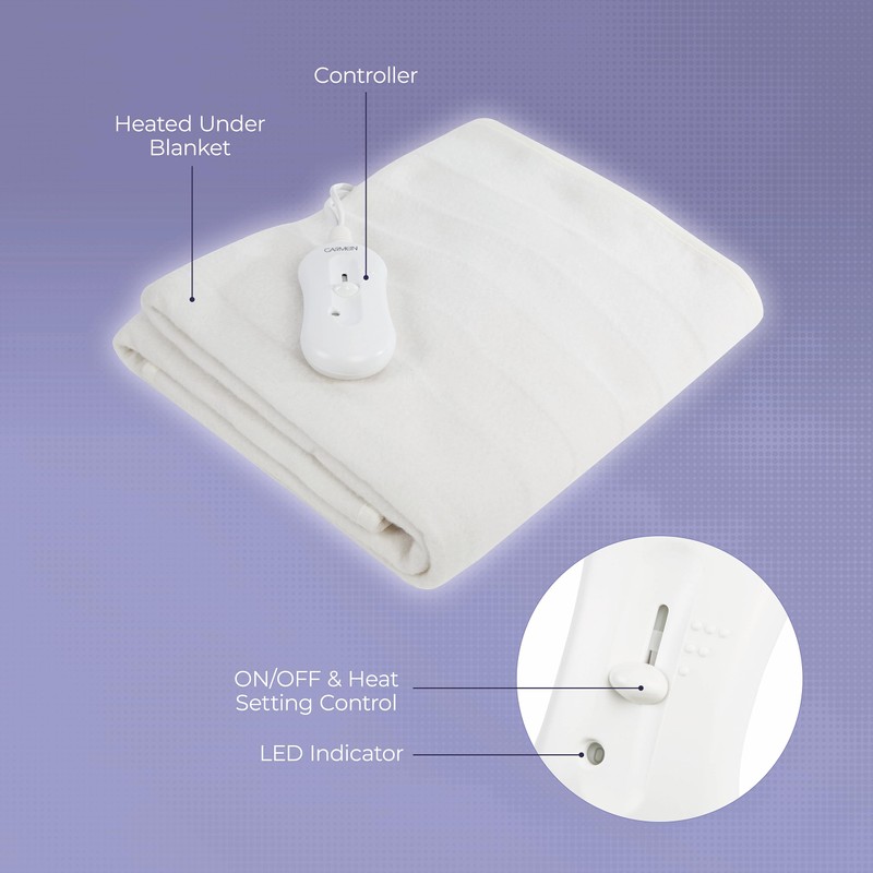 Carmen C81192 Single Heated Under Blanket with Overheat Protection, 40W, White