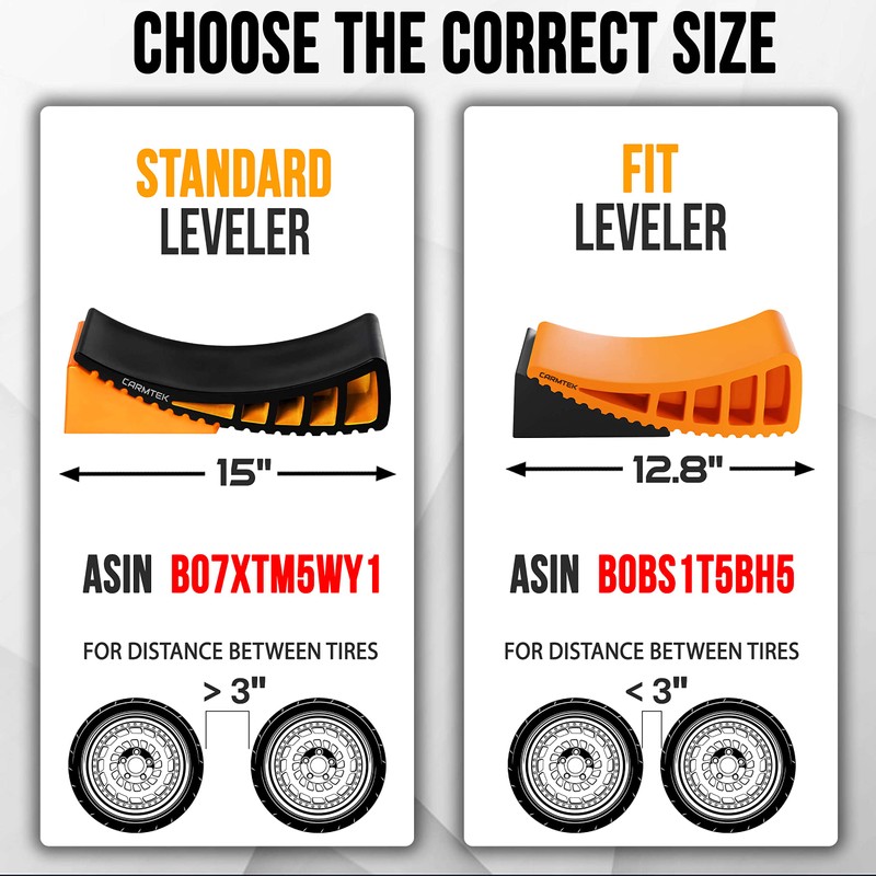 CARMTEK Camper Leveler Premium Kit | Fit Curved RV Levelers with Wheel Chocks, Rubber Mats & Carry Bag for Tight Dual Axle Trailers | Faster RV Leveling System than RV Leveling Blocks | RV Accessories