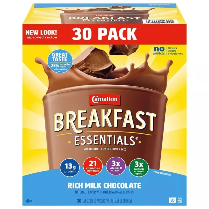 Suitable for individuals of all ages, Carnation Breakfast Essentials Nutritional Drink Mix is a versatile addition to any pantry. Parents can rest easy knowing that their kids are getting essential nutrients in a delicious format they'll love. It's also an ideal choice for individuals with busy lifestyles, students, athletes, and anyone looking for a convenient way to boost their nutrient intake. With its long shelf life and easy storage, you can stock up on this pantry staple without worrying about it going to waste.