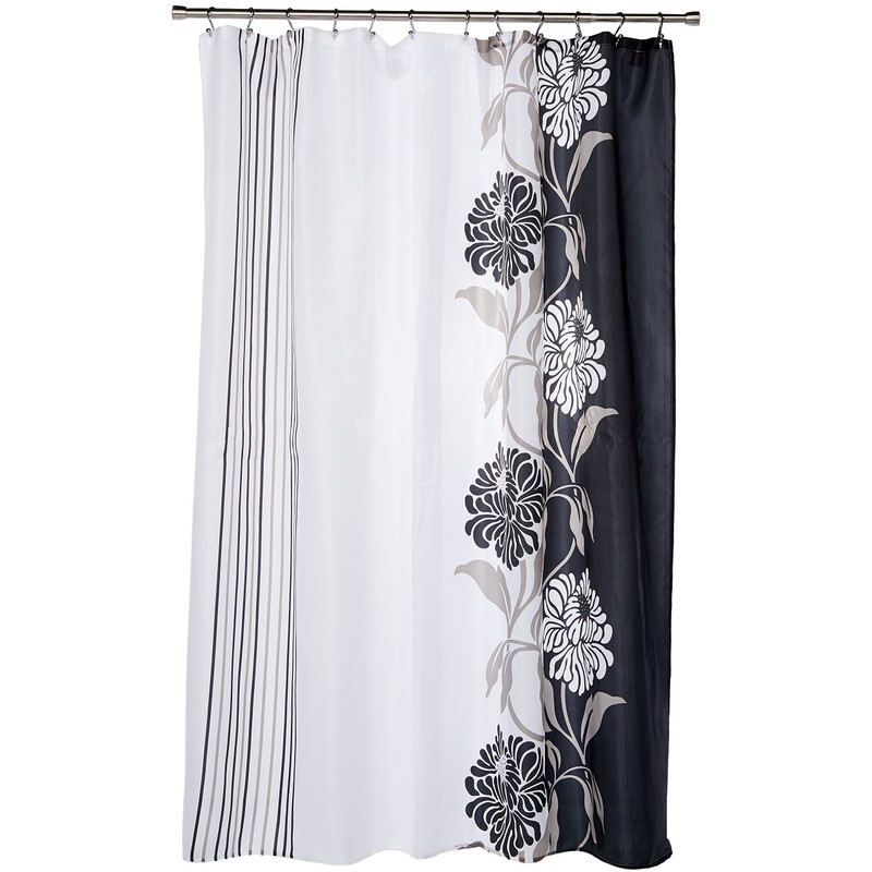 Carnation Home Fashions 100-Percent Polyester Fabric Print 70 by 72-Inch Shower Curtain, Standard, Chelsea, Black/White